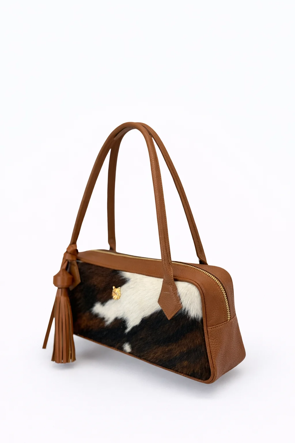 El contraste de cueros cuidadosamente seleccionados aporta profundidad visual, mientras que sus acabados refinados reflejan una artesanía precisa y contemporánea. Un bolso diseñado para acompañar con naturalidad a la mujer moderna, equilibrando sofisticación, funcionalidad y carácter atemporal.