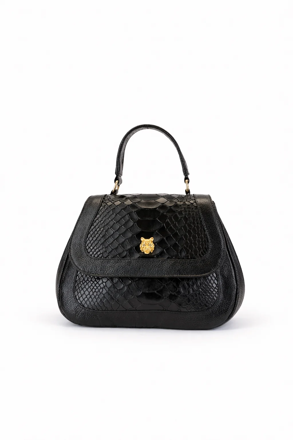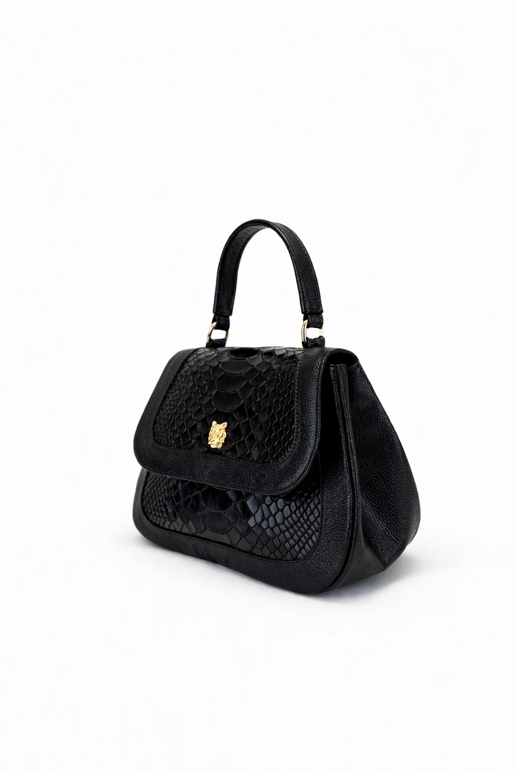 Bolso de mano elaborado en cuero de alta calidad con textura grabada, diseño estructurado y acabado premium. Cuenta con asa superior, tapa frontal con herraje metálico y espacio interior funcional para el uso diario. Un modelo elegante y versátil, ideal para ocasiones formales o looks sofisticados de día y noche.